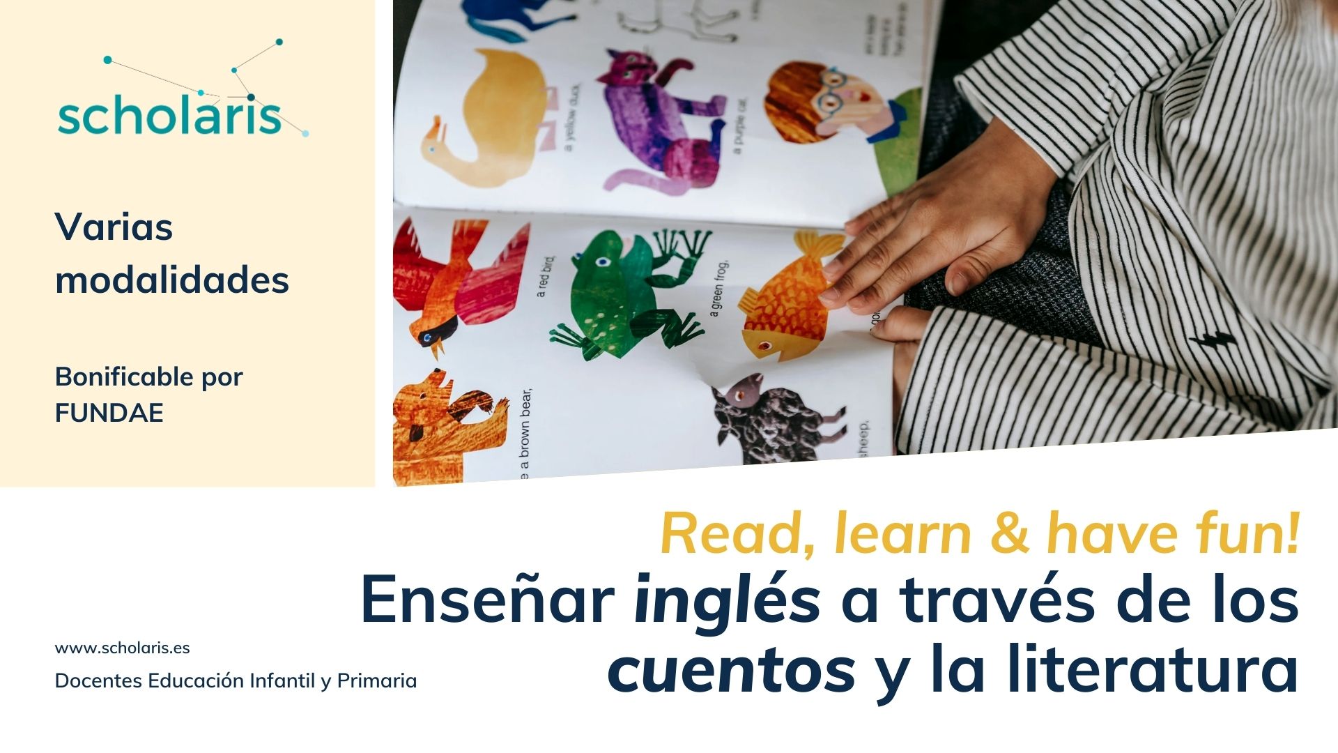 El curso – taller es una propuesta para enseñar a leer, entonar, pronunciar, adquirir vocabulario y estructuras gramaticales de la lengua inglesa a través de lecturas de libros, canciones, obras de teatro, poemas…